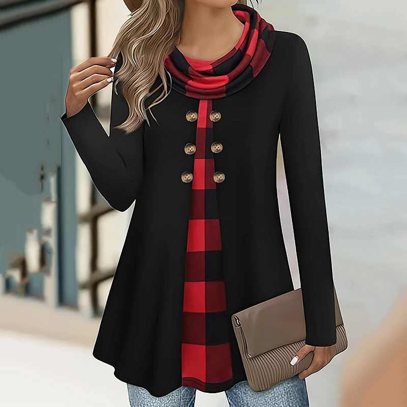 Women's Blouse Plaid Elegant Daily Stylish Long Sleeve High Neck Long Tops Daily Holiday Going out Buttons White Red Blue Green Khaki Spring Fall