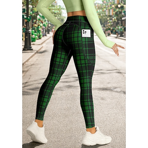 San Patrizio Per donna leggings da pilates Pantaloni fitness Leggings da palestra Tasche Bollo Tasche Laterali Pilates Palestra Allenamento in Palestra Pantaloni Collant Leggings Plaid Bianco Rosso