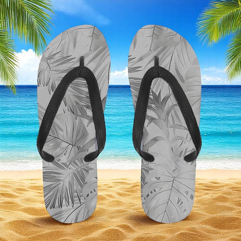 Men's Blue Leaf Printed Flip Flops – Tropical Stylish Style for Beach Vacations, Island Hopping Beachside Dinners