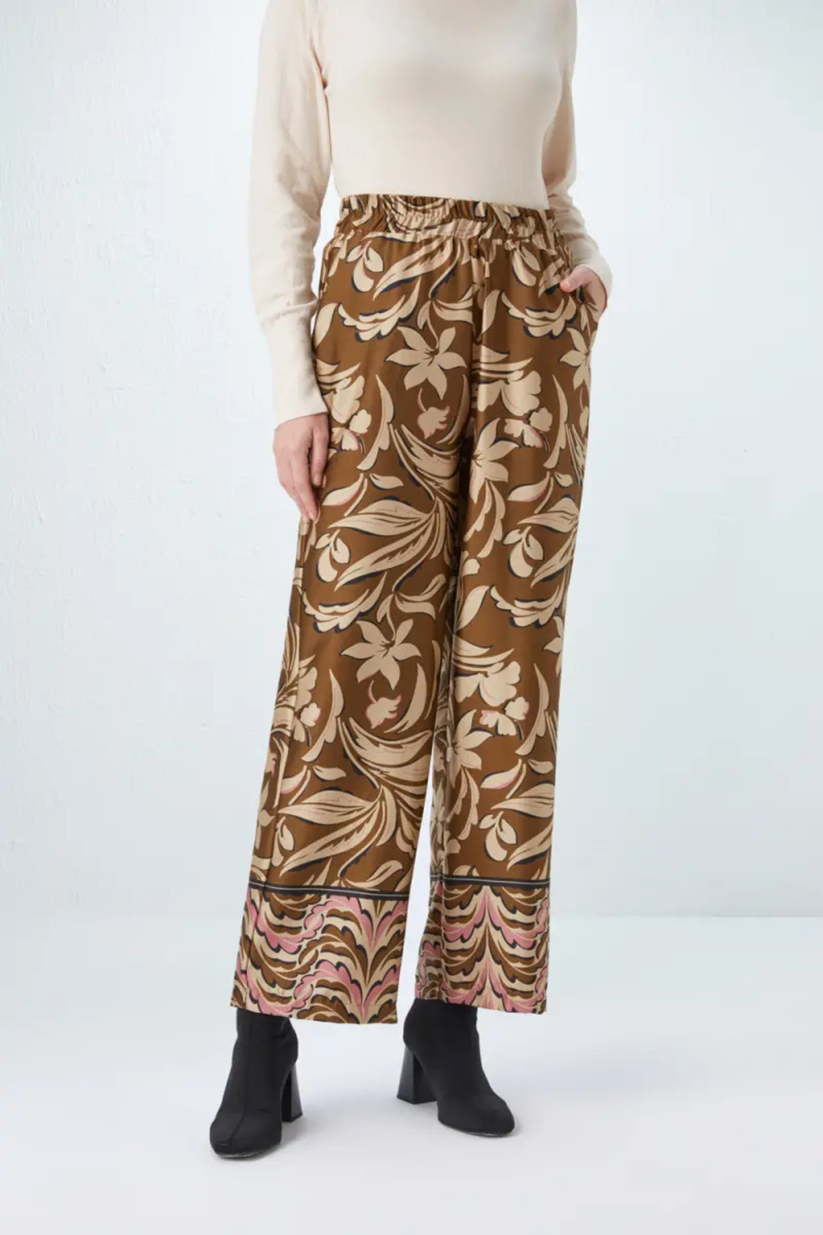 Gusto Womens Printed Satin Trousers in Khaki Rubber - Size Large | Gusto Sale | Discount Designer Brands