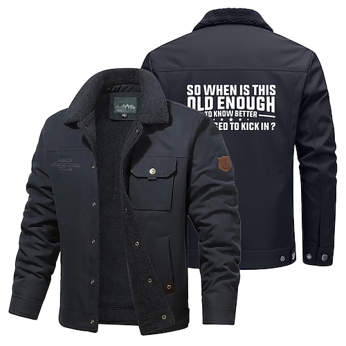 Per uomo Stampa Lettere Divertente Giacca in Pile Giacca Cargo Giacca Sherpa Calore Termico Vintage All'aperto Casa Casuale Tasche Multiple Giacche di cotone Cappotti invernali Autunno Inverno Collo
