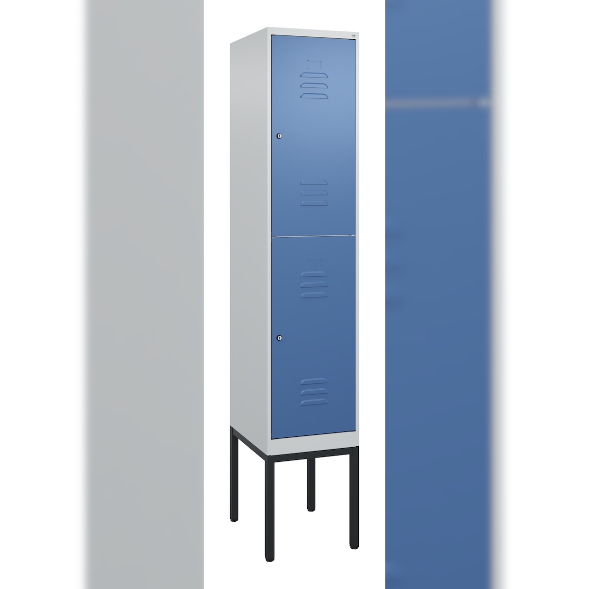Doppelstock-Spind Cambio, 1 Abteil, Korpus lichtgrau / Stahlblech-Tür enzianblau, Breite 400 mm C+P