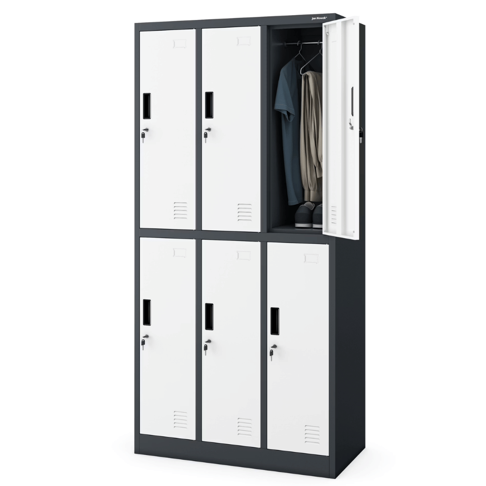 DELUKE Umkleideschrank Spind TOKIO - 6 Abteile, Etikettenhalter | Umkleidespind Schließfachschrank Garderobenspind, 185x90x45cm Anthrazit-Weiß