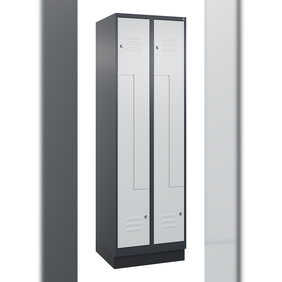 C+P Z-Spind Classic PLUS, Sockel, 4 Abteile, HxBxT 195x60x50cm, Zylinderschloss, Anthrazit/Hellgrau von PROREGAL