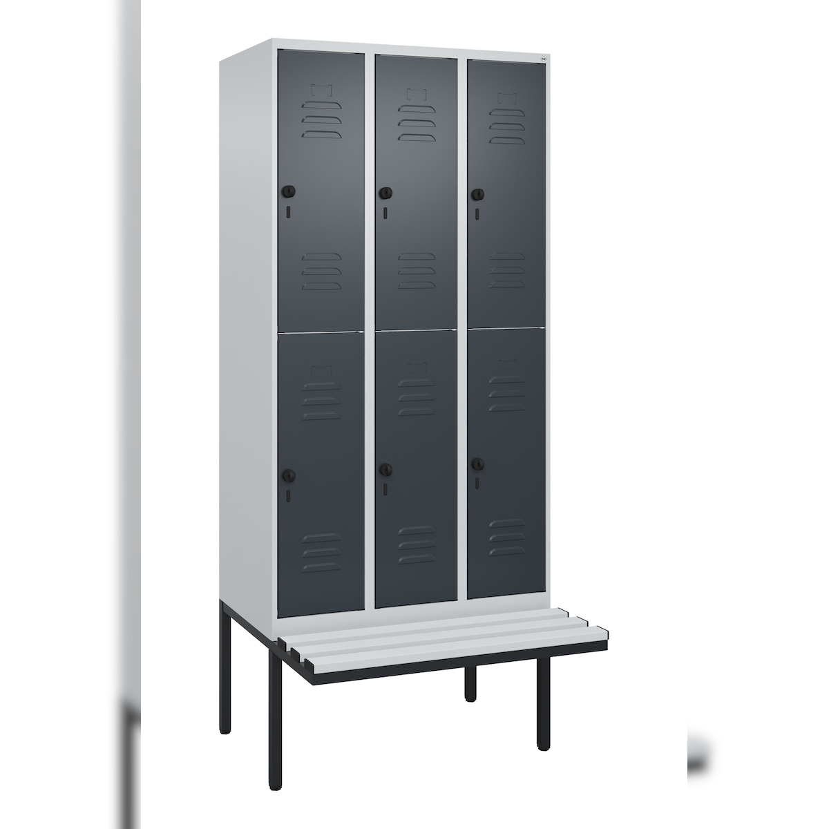 C+P Spind Classic PLUS, Kunststoff untergebaute Sitzbank, 2 Abteile, HxBxT 212x60x82cm, Sicherheitsdrehriegel, Anthrazit/Hellgrau von PROREGAL