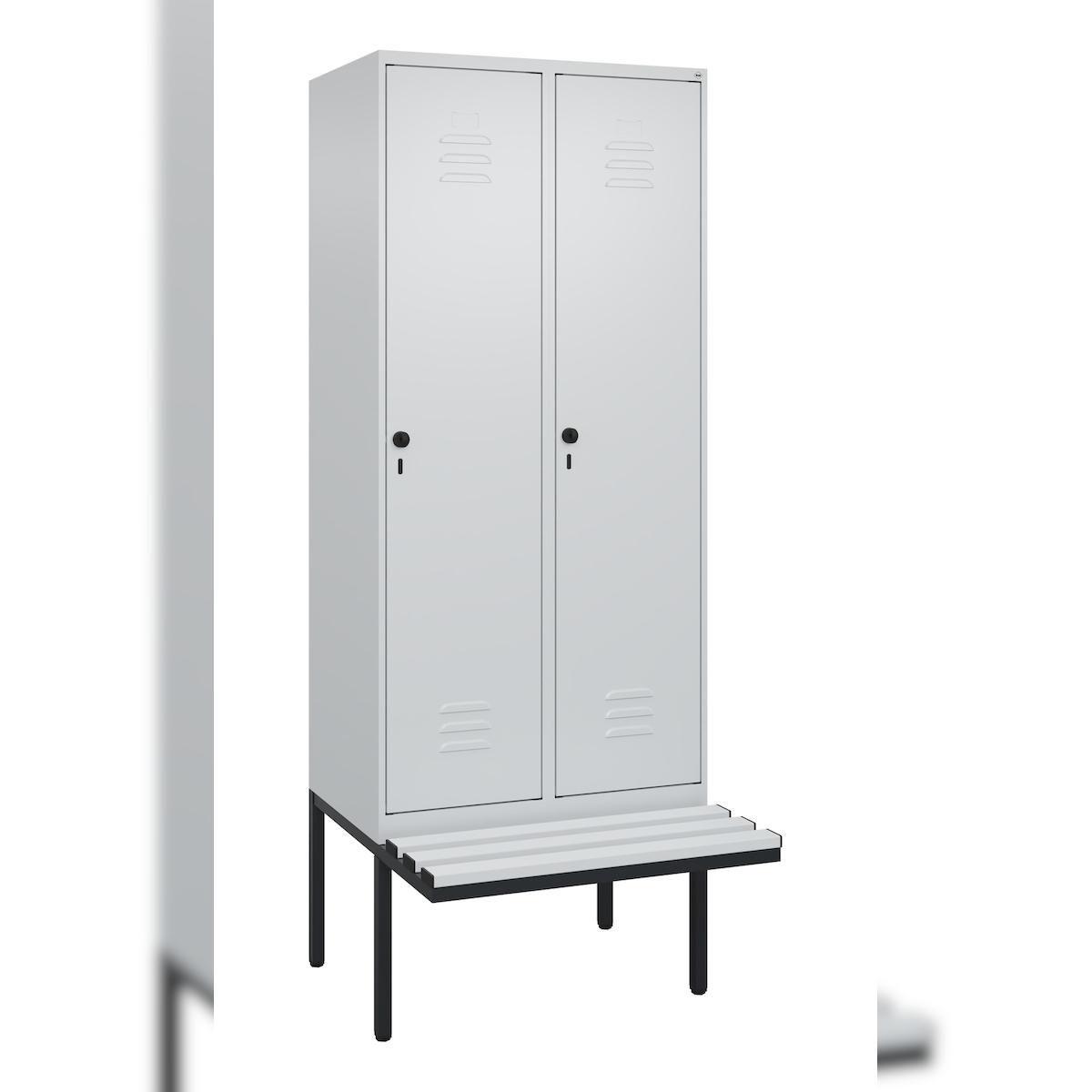 C+P Spind Classic PLUS, Kunststoff schwebende Sitzbank, 2 Abteile, HxBxT 212x80x82cm, Sicherheitsdrehriegel, Hellgrau/Hellgrau von PROREGAL