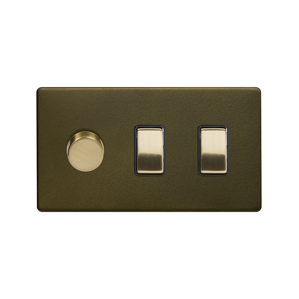 Soho Lighting Bronze with Brushed Brass 3 Gang Dimmer and Rocker Switch Combo (2-Way Intelligent Dimmer & 2 x 2-Way Light Switch)