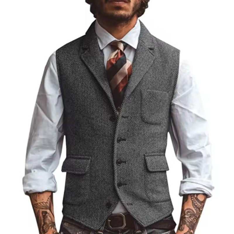 Men's Vest Gilet Vacation Daily Date Fashion Casual Spring Fall Buttons Pocket Polyester Comfortable Plain Single Breasted One-button Lapel Regular Fit Silver Dark Brown Black Champagne Vest