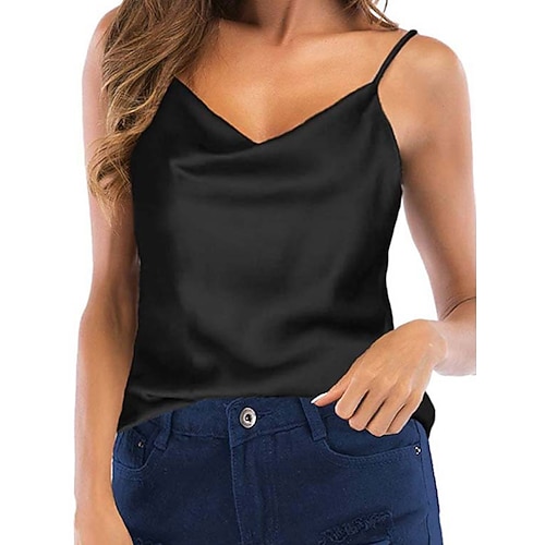 Per donna Canotta a canotta Tinta unica Informale Senza maniche A V Top regolari Giornaliero Bottoni Tasche Nero Bianco Vino Verde Estate Primavera