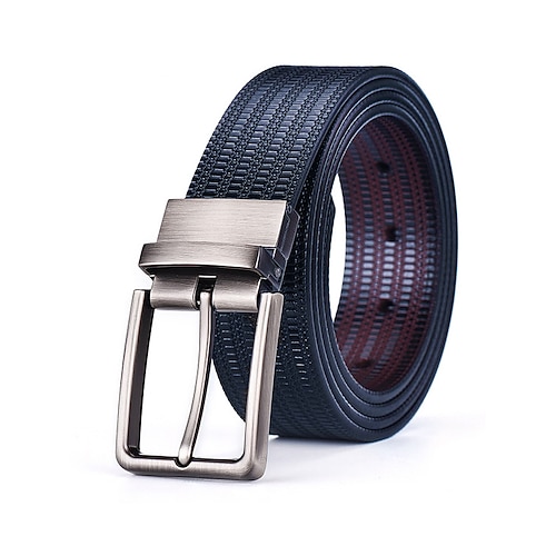 cintura girevole da uomo in vera pelle - elegante cintura nera e blu con fibbia in metallo regolabile per regali di Natale e abbigliamento per le feste