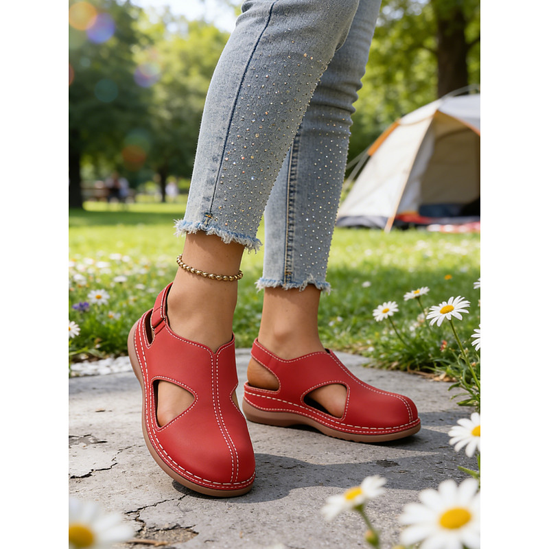Women's Red Cut-Out Comfort Sandals, Soft Cushioned Sole and Breathable for Daily Walking, Travel, Work and Casual Wear