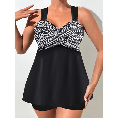 Costume da bagno due pezzi Tankini da donna Pantaloni Corti Controllo della pancia Alta vita Slim Senza schienale Abbigliamento da spiaggia in vacanza Ombre Grafica Collo a V Senza maniche