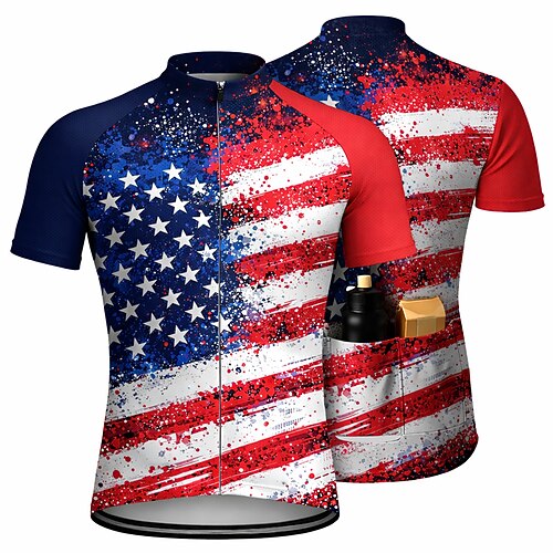 250° anniversario dell'America Giornata dell'indipendenza Per uomo Maglia da Ciclismo Maglia da downhill Bandiera Americana Manica Corta Bicicletta Maglia Maglietta Top con 3 tasche posteriori