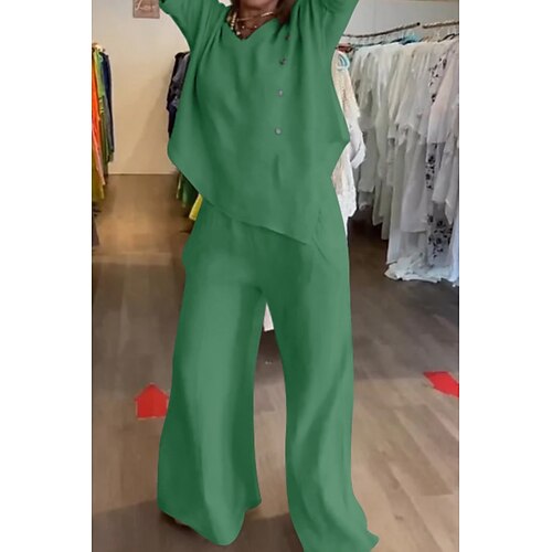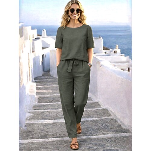 Per donna Set di Pantaloni Bolero Finto cotone e lino Manica Corta Girocollo Tinta unica Moda Streetwear Casuale Quotidiano All'aperto Blu Arancione Verde Estate Vestibilità comoda