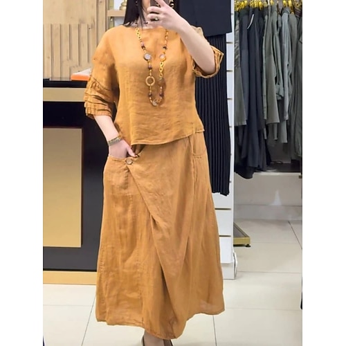 Per donna Set di biancheria in cotone Set di gonne Manica Lunga Girocollo Tinta unica Elegante Moda Streetwear Casuale Quotidiano All'aperto Nero Bianco Giallo Primavera Estate Vestibilità comoda