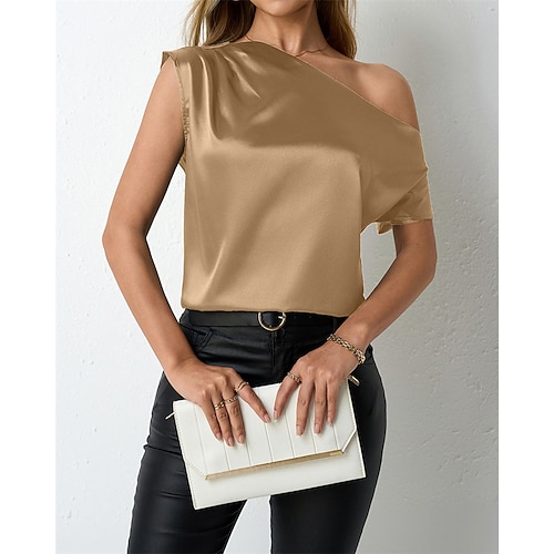 Per donna Camicia Elegant Elegante Raso/Satin Tinta unica Semplice Elegante Vintage Signore Senza Maniche Senza Spalle Top Regolari Lavoro Quotidiano Ferie Arricciato Drappeggiato Nero Verde militare