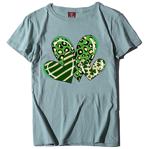 Maglietta da donna di San Patrizio T shirt Tee Verde Verde Chiaro Vino Foglia Leopardo Stampa Maniche Corte Casual San Valentino Base Collo Rotondo Vestibilità Normale Fortunata Dipinto di San
