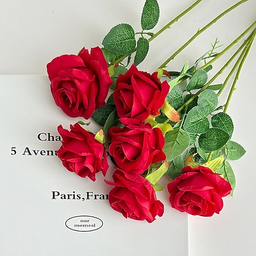 6 rose artificiali, rose finte realistiche adatte per decorazioni per la casa, matrimoni, San Valentino, Natale, centrotavola, bouquet da sposa, perfette per soggiorno, camera da letto, esposizione in