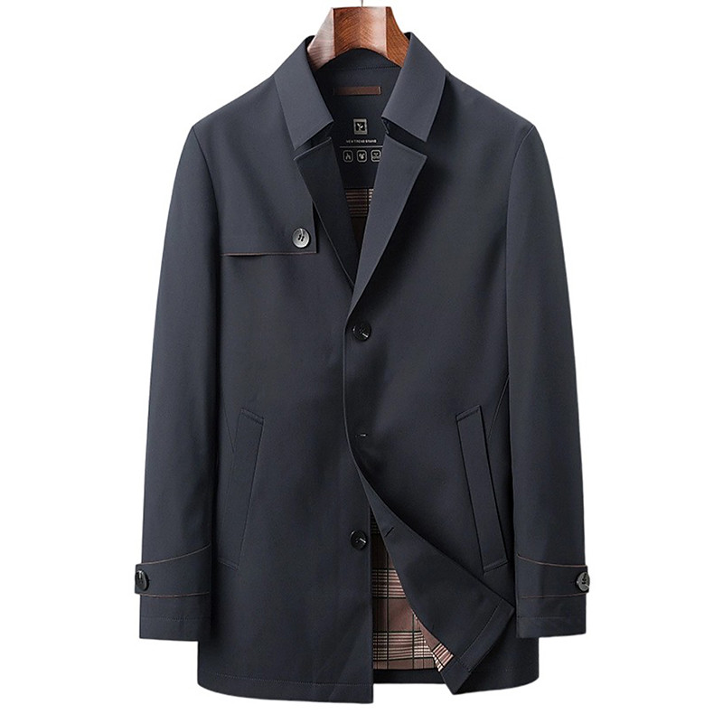 Men Trench Coat Formal Office Spring Fall Cross-Seasons Polyester Outerwear Clothing Apparel Elegant Daily Solid Color Fold-over Collar Single Breasted