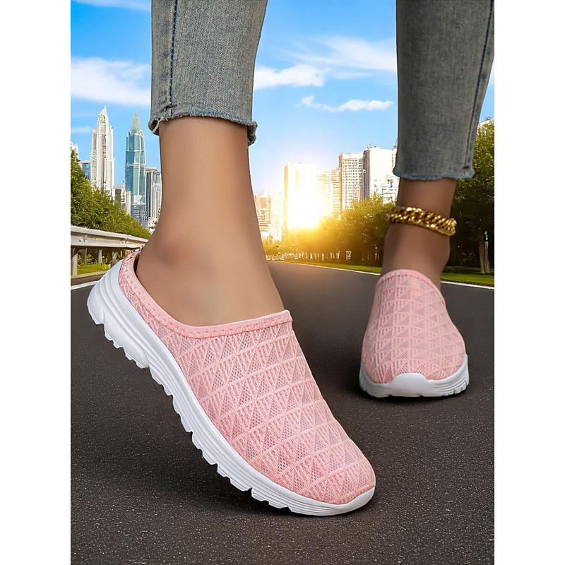 Women's Pink Mesh Walking Shoes – Lightweight Breathable Mule Sneakers for Outdoor Fitness, City Commutes and Casual Travel