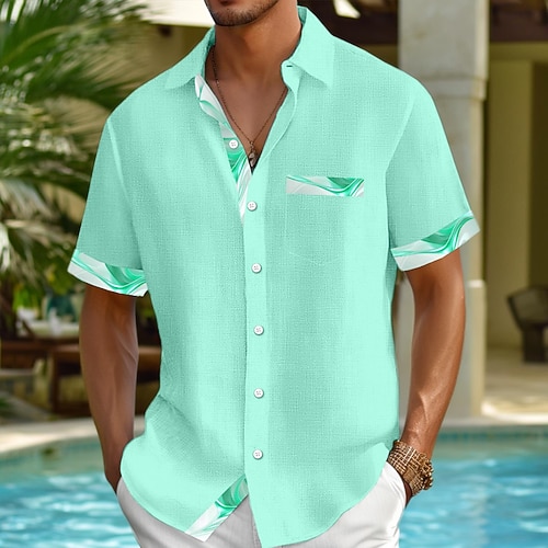 Per uomo Camicia Camicia di lino Camicia Estiva Camicia da Spiaggia Camicia con Bottoni Casuale Ferie Rosa Azzurro cielo Verde Beige Manica Corta Collo ripiegato Estate Abbigliamento Tasca Frontale