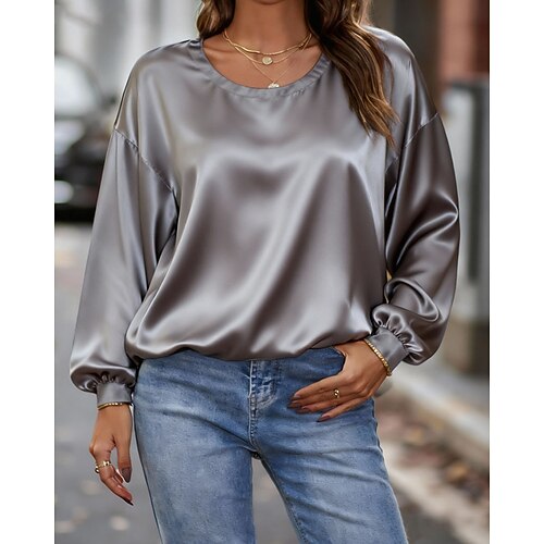 Per donna Camicia Elegant Elegante Raso/Satin Semplice Elegante Casual Manica Lunga Girocollo Top Regolari Quotidiano Ferie Uscire Patchwork Marrone rossastro Rosa Vino Azzurro cielo Grigio Primavera