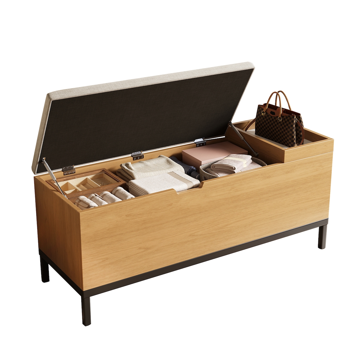 OKWISH Schuhbank 115x40x49 Sitzbank Flurbank Aufbewahrungsbank Stauraum Bank mit Polster MDF stabil gepolstert Deckelbox Eingangsbereich Natur Grau