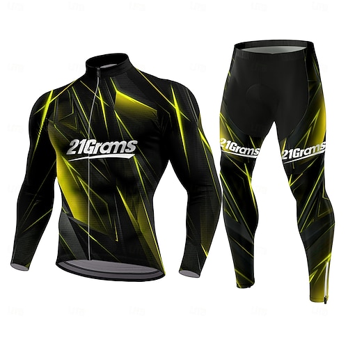 Herren Radtrikot mit Hose Langarm Blau Gelb Wein Fahhrad Thermowarm 3D-Polster Schnelltrocknend Anatomisches Design UV-beständig Sport Bekleidung
