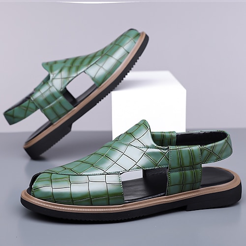 Silberne Herren-Sandalen mit Krokodilmuster zum Hineinschlüpfen – stilvolles, atmungsaktives Schuhwerk für Freizeitaktivitäten, warmes Wetter und bequemen Tragekomfort den ganzen Tag.