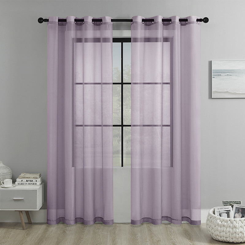 Curtain Drapes Solid Color Grommet Top Polyester Semi-Blackout Curtains - Sheer Drapes for Living Room, Bay Window, and Balcony Decor