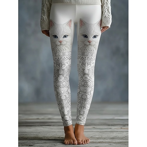 Damen-Leggings im Wikinger-Stil, kuschelig, für Urlaub, Vintage-Look, Ethno-Stil, lange Länge, hoher Bund, Katzenprint, bequem, dehnbar, ideal für Freizeit, Urlaub, Alltag, grau, Frühling, Herbst,