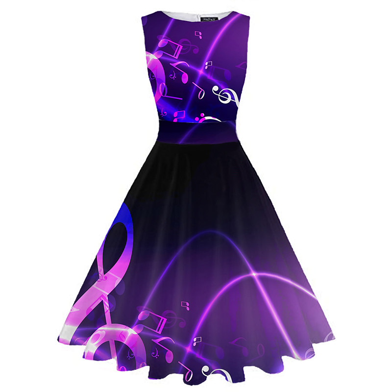 Women's Retro 1950s Vintage Dress Midi Dress Daily Date Ruched Print Note Crew Neck Sleeveless Slim Summer Spring 2023 Black White S M L XL