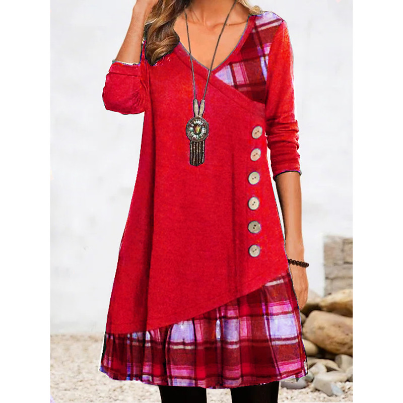 Women's Casual Dress T Shirt Dress Tee Dress Tartan Dress Mini Dress Dark Green 3/4 Length Sleeve Plaid Ruched Winter Fall Spring V Neck Modern Weekend 2023 S M L XL 2XL 3XL