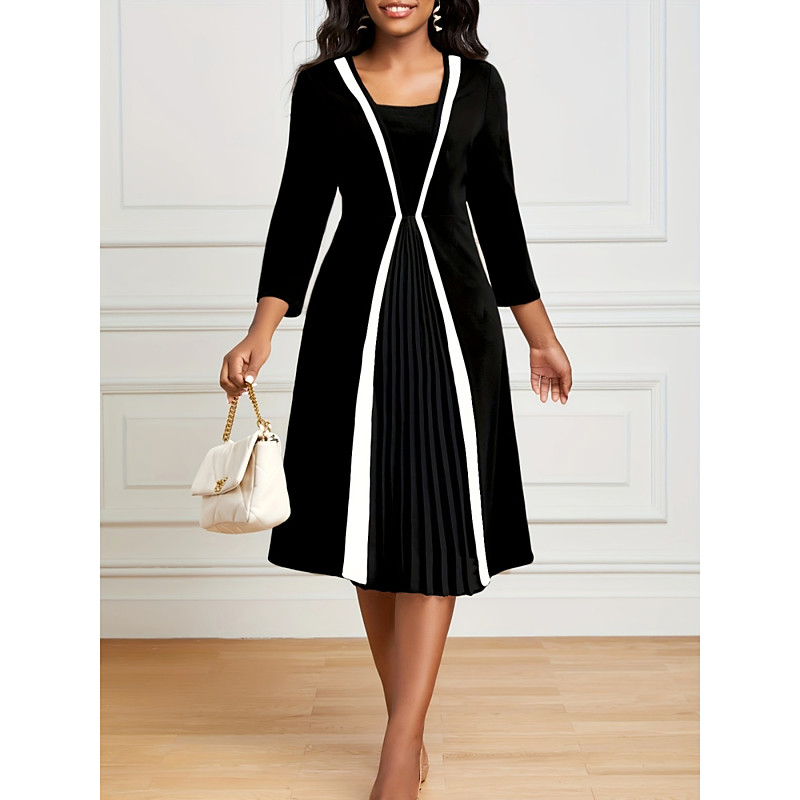 Women's Midi Dress A Line Dress Work Dresses Semi Formal Office Regular Fit Plain 3/4 Length Sleeve Crew Neck Black Pink Red Khaki Spring Fall
