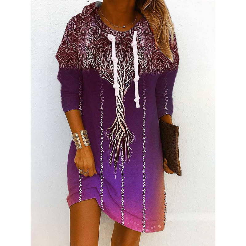 Women's Mini Dress Sheath Dress Shift Dress Party Casual Boho Outdoor Home Sport Regular Fit Floral Graphic Abstract Long Sleeve Hooded Blue Purple Green Gray Spring Fall Winter