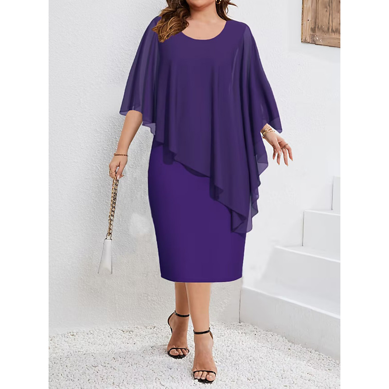 Women's Plus Size Casual Dress Solid Color Crew Neck Long Sleeve Summer Spring Elegant Fashion Modern Casual Midi Dress Daily Holiday Dress