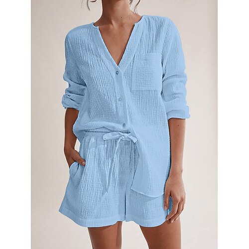 Per donna Set da due pezzi Set di Pantaloncini Bolero Top Manica Lunga Scollo a V Tinta unica Coulisse Elegante Moda Streetwear Casuale Quotidiano All'aperto Blu Bianco Giallo Estate Vestibilit