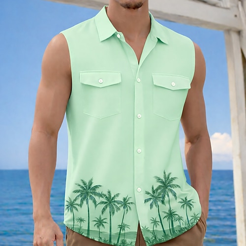 Per uomo Albero di Cocco Piante Tropicali Camicia Camicia hawaiana estiva Camicia Aloha Senza Maniche Resort Vacanza al Mare Estate Primavera Collo ripiegato Stampa 3D Due tasche anteriori Camicie