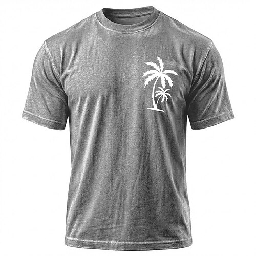 Per uomo Palma di Cocco Maglietta Maglietta per lavaggio minerali Manica Corta maglietta Lavaggio acido Girocollo Camicia Vintage Retrò Casuale Spiaggia Viaggio Blu Viola Grigio Estate Primavera