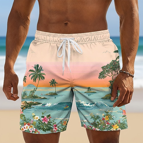 Per uomo Albero di Cocco Piante Tropicali Costumi da bagno Pantaloncini da mare Pantaloncini da Surf Misura del girovita medio Streetwear Hawaiano Vacanza al Mare Tasche Laterali fodera in rete