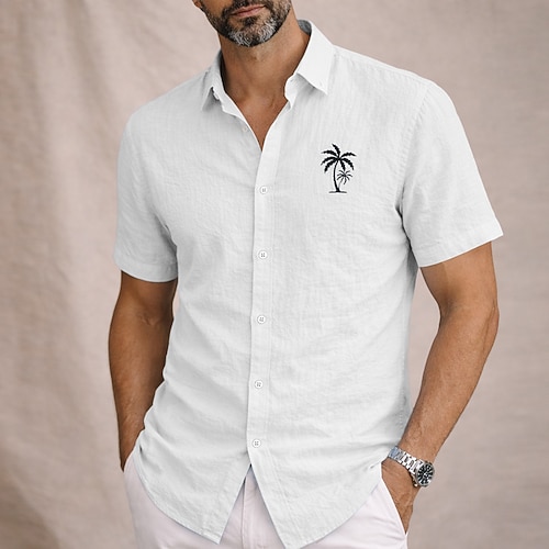 Per uomo camicia di lino Camicia da spiaggia Camicia hawaiana Camicia con bottoni Albero di cocco Da mare Hawaiano Bianco Verde Cachi Blu scuro Manica corta Bavero Primavera estate Abbigliamento