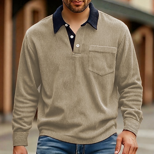 Per uomo Camicia di Velluto a Coste Maglia da golf Lavoro Casuale Bavero Manica Lunga Essenziale Moderno Blocco di colori Tasca Bottoni Primavera Autunno Vestibilità regolare Nero Bianco Rosso Blu