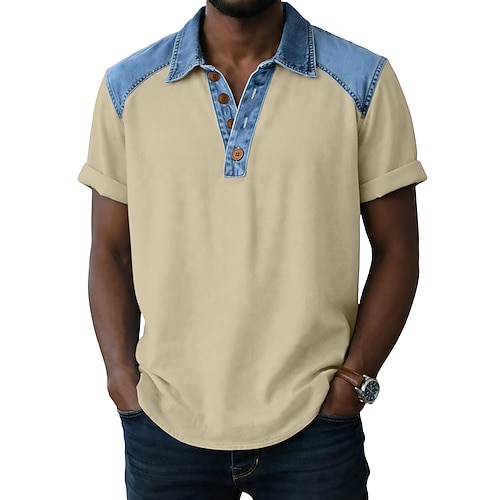 Per uomo Polo Camicia di Jeans Casuale Lavoro Bavero Manica Corta Essenziale Moderno Blocco di colori Patchwork Bottoni Primavera Estate Blu Nero Bianco Blu marino Marrone Verde Polo