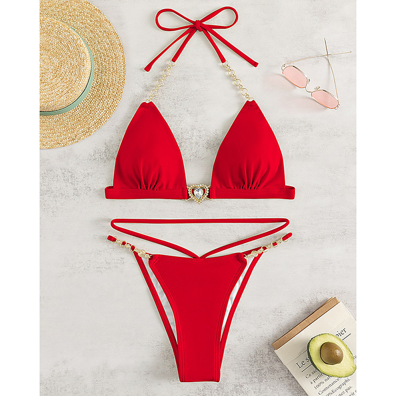 Women's Swimwear 2 Piece Cheeky Swimsuit Backless Vacation Beach Wear Solid Color Halter Neck Sleeveless Bathing Suits