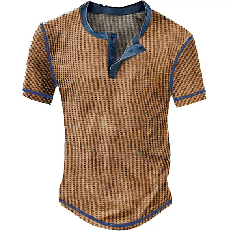 Men's Waffle Henley Shirt Tee Short Sleeve Plaid Checkered Fashion Designer Comfortable Buttons Henley Casual Daily Outdoor Summer Blue Black White Henley T-Shirt