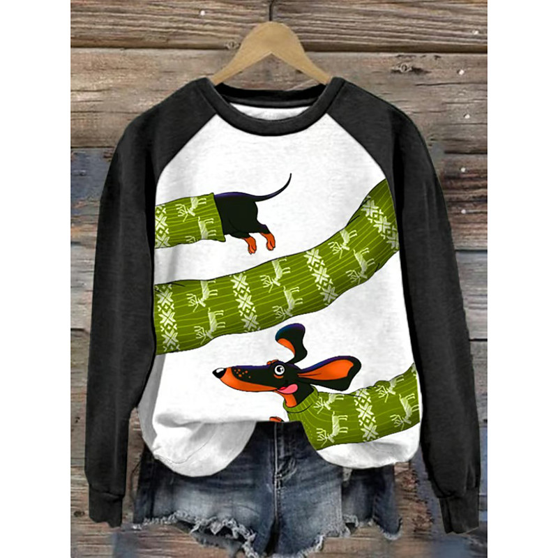Women's Pullover Sweatshirt Graphic Animal Plaid Fashion Casual Long Sleeve Crew Neck Regular Tops Street Dailywear Casual Print Black Light Green Green Gray Fall Winter