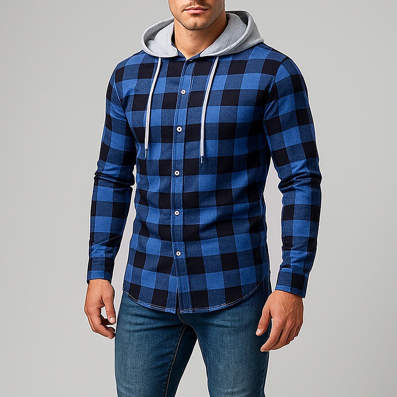 Men's Shirt Casual Shirt Beach Shirt Blue Black Yellow Red Green Long Sleeve Plaid Hooded Casual Daily Drawstring Clothing Apparel Fashion Casual Comfortable