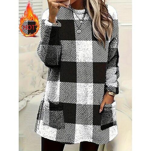 Per donna Felpa Pullover Grafico Plaid Casual Manica Lunga Girocollo Top corti Streetwear Abbigliamento Quotidiano Casuale Nero Giallo Blu Marrone Autunno Inverno