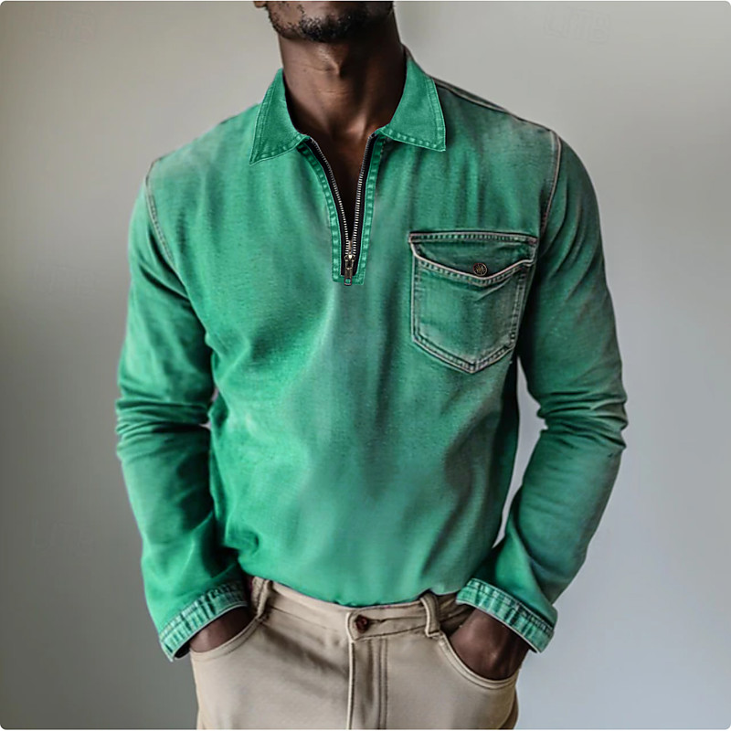 Men's Pullover Sweatshirt Zip Polo Vacation Street Zip Long Sleeve Fashion Basic Plain Pocket Fashion Spring Fall All Seasons Regular Fit Black Pink Navy Blue Blue Green Khaki Pullover Sweatshirt