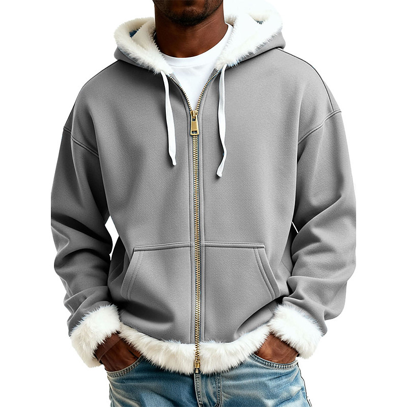 Men's Hoodie Full Zip Hoodie Fleece Hoodie Fleece lined Hoodie Apricot Black White Light Green Red Hooded Plain Patchwork Sports Outdoor Casual Daily Streetwear Cool Sportswear Fall Winter Clothing